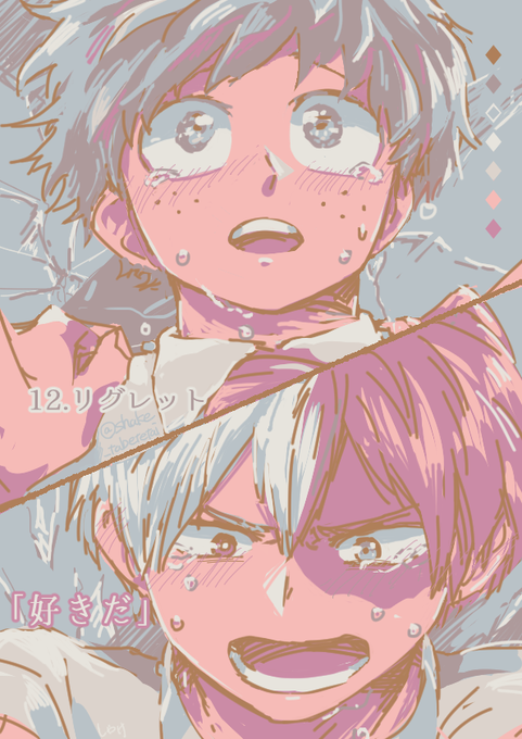 ヒロ○カ 轟❄❤️🔥凍×緑💚出👊💥 今日も失礼します…! 過去イラスト再掲です #ひらいて赤ブー