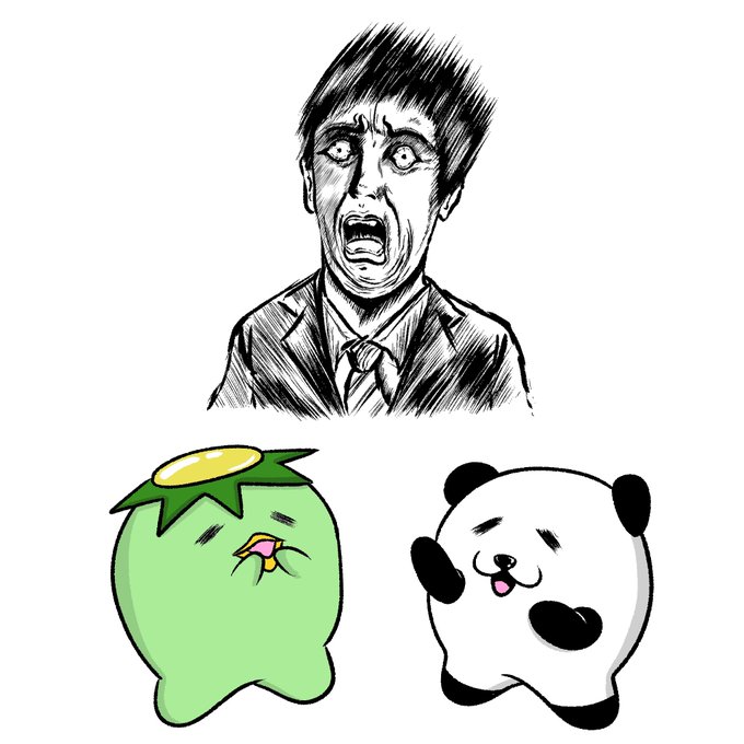あの時のあいつ、面白かったね〜 #イラスト #パンダ #カッパ
