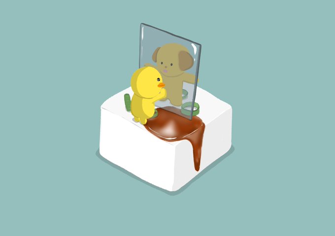 こっちは僕のスペースだから #イラスト #豆腐 #ひよこ #犬