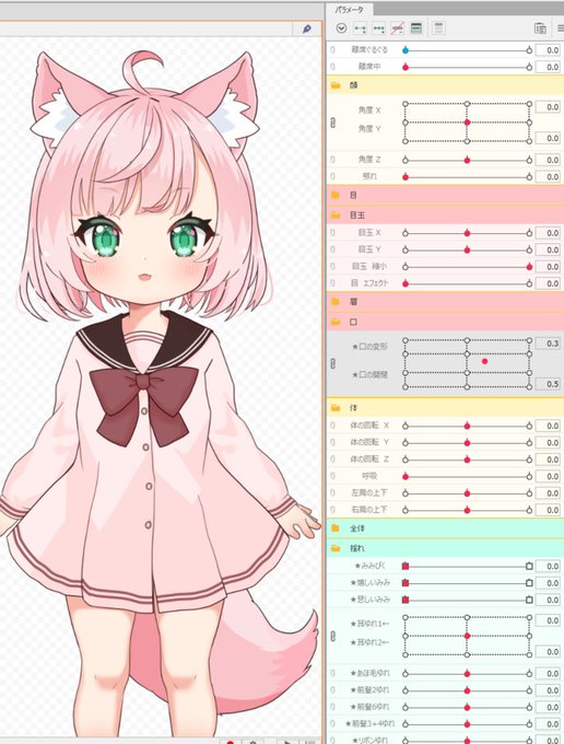 Live2Dで角度をつける作業に入りました🙂🙃💨 ちょっと変な角度にすると顔が崩壊する🫠