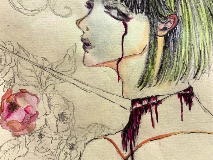 昨日描いた堕ちルーク先輩で顔彩の試し塗り