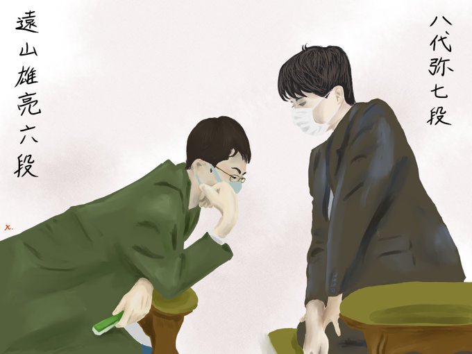 今さらシリーズ。 8月23日の朝日杯3局目です。 ▲八代弥七段ー△遠山雄亮六段のイラストです。 #朝日杯 #八代弥 #遠山雄亮 #Abema将棋 #イラスト #CLIPSTUDIO
