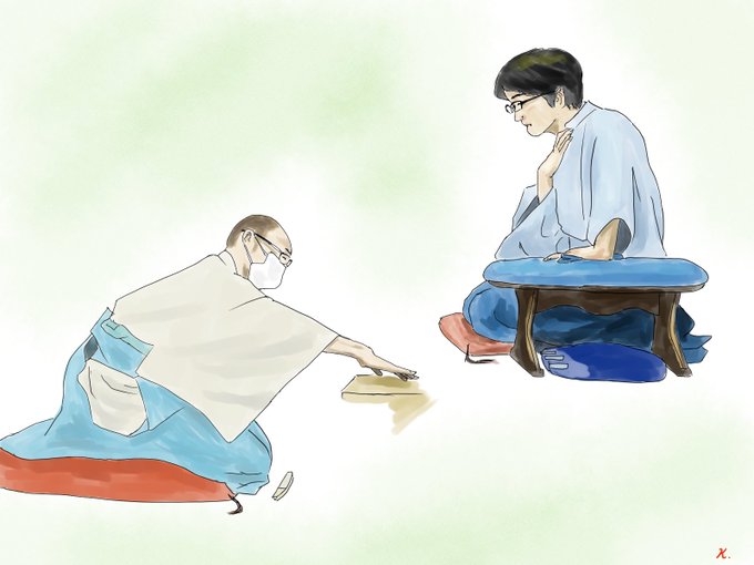 名人戦第5局、今朝のイラストです。 夏色ですね~。 #名人戦 #豊島将之 #渡辺明 #将棋会館