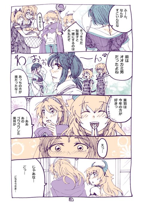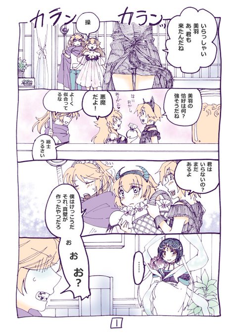海神島のハロウィン妄想漫画!美羽ちゃんのハロウィン衣装を見て「その恰好で一人で行くな」って、しぶしぶ付き合ってくれる総士君なのでした。
