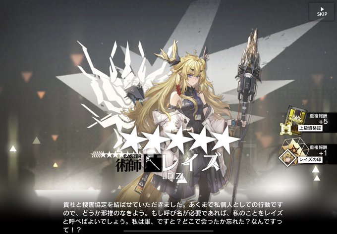 サイラッハガチャ250連目は5人目のサイラッハでしたよヽ(*´∀`)ノ #アークナイツ 完凸迄後1人だ!! 後レイズも来てた