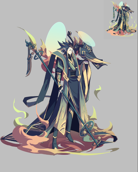 盘古的私下Q版-盘古是个很喜欢龙相关物品的人,由于他盘瓠的基因里面原本应该有龙狗的特征,可是自己全身上下除了那个角以外好像也没有什么龙的特征了