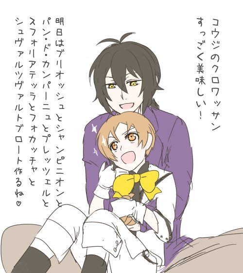 クレープ食べてきたよってことで、今日のらくがき〜コウヒロ…?コウヒロと言って良いのかよくわからなくなったのでおねショタっぽいセリフを書き足しました←