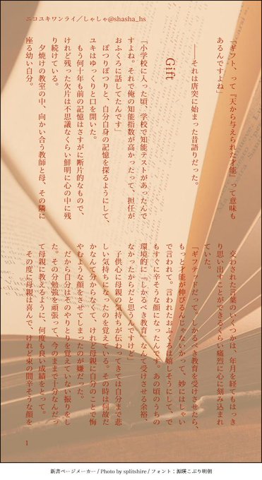 4/14ニコユキワンライ https://t.co/5kMPFFlwhJ #ニコユキ版深夜の60分1本 #ncyk_60min @ncyk_60min お題:「ギフト」。本編数年後の同棲ニコユキの話。ギフトと聞いてこっちの意味ばかり頭を巡ってしまいました。ユキって超頭良いんだよという話。