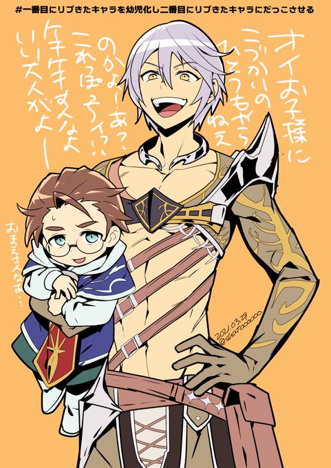 #一番目にリプきたキャラを幼児化し二番目にリプきたキャラにだっこさせる