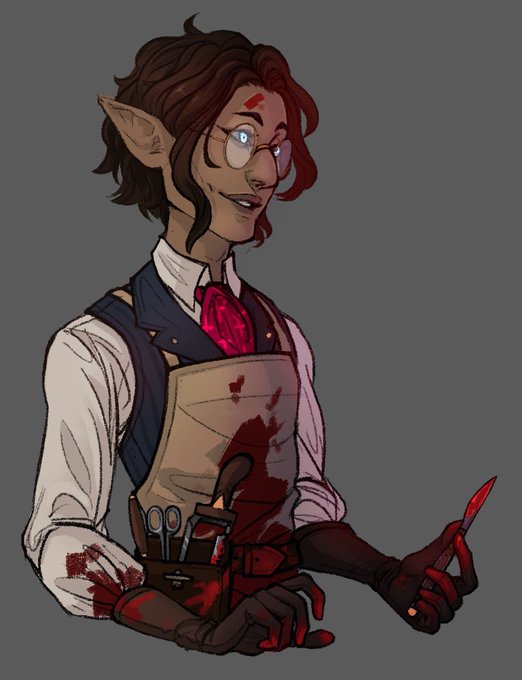 @mikaelji Had to save and come back to this tweet because i was so excited to see some doctor ocs... here’s Bellamy Briar! He’s a surgeon/plague doctor who cut out his own heart in sacrifice to an eldritch hidden god to (try) and save his dying daughter... now he’s a very sad gay ghost 💀