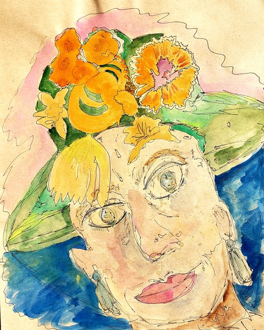 Inspired by the #blue in the uniforms of #nationalgeographic #alaskastatetroopers which I watched from the very edge of my seat for the first time last night. Maybe some of the #anxiety from the #stress of their jobs translated into the painting? #flower