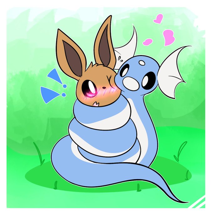 A commission for a peep on fa A dratini giving the good hugs to a vee