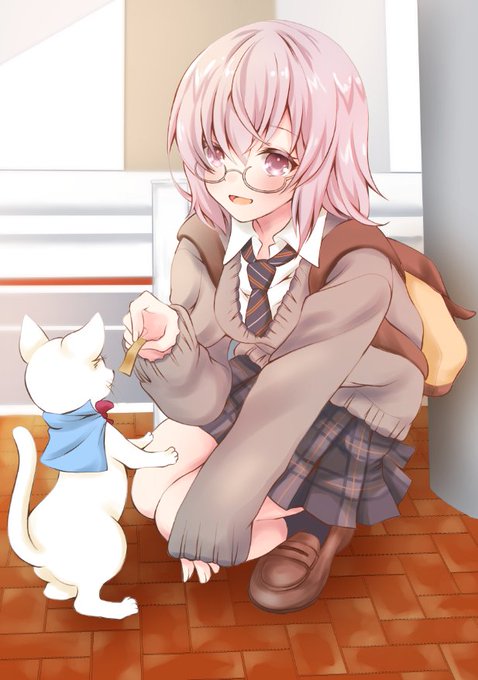 if世界で、後輩のJKマシュがにゃんこと戯れてる朝に「おはようございます、せんぱい♥」って言われたい欲望をぶつけました #FGO