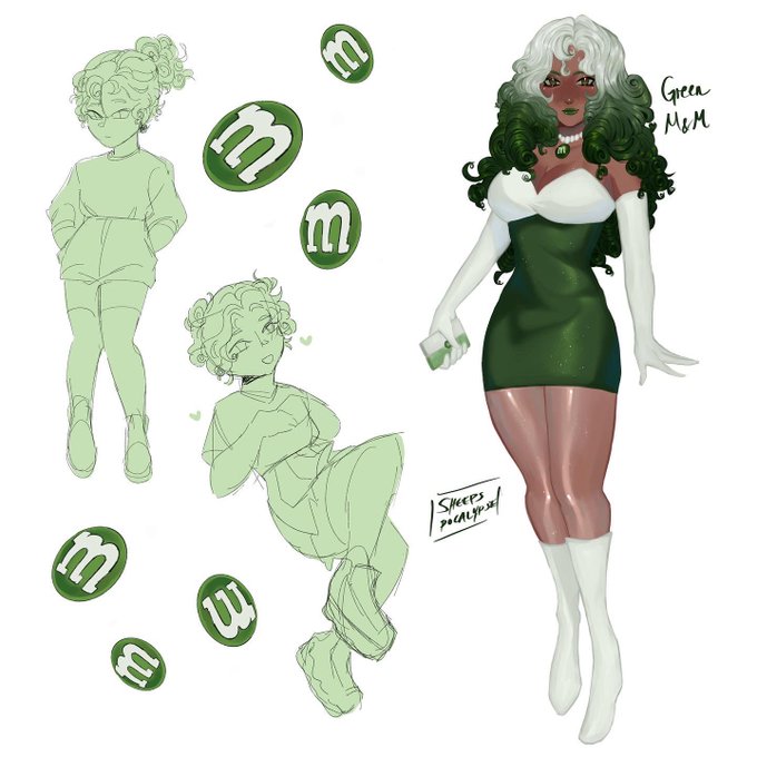 Forgot to share this here but I yassified the green m&m. I hope y’all like it though because I spent like 5 hours rendering those curls 😭😭