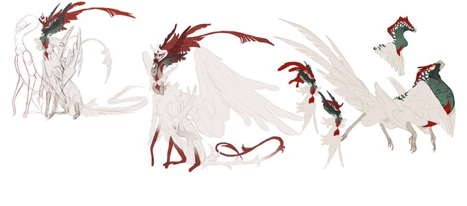 I worked on some concepts for an adoptable wich then became two distinct creatures! The chonky full body on the right is a sketch that @nebquerna did and of course I did thin one with a long neck! I'm not sure I want to do a clean version of it, maybe I should sell them like this