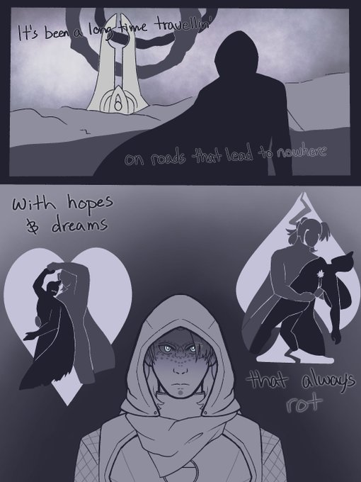 Page 1 of a comic WIP that's been collecting dust for a few months. Lyrics are "Whoreson Prison Blues" from the Witcher TV series. No idea if I'm gonna finish this haha