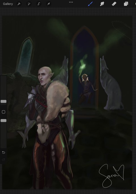 Work in progress of my #SoLavellan romance illustration. Ahhh the pain! Cant eait to finish this one. Still half sketched though, my inkey is still faceless lol #DragonAgeInquisition #dragonage #solas #solaslavellan