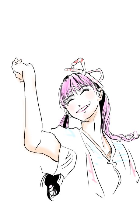 今週は美怜だけ描いてみるの 似ててもいなくても なのだけど、マチ子舞台化てことで、さっきの絵にマチ子帽子で に色付けてる途中