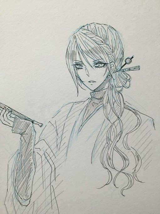 @HEBIsukiski1204 細身で、髪は長め(後ろでお団子)、服は和風というより中華系で 髪は少し薄めの紫、目は金です