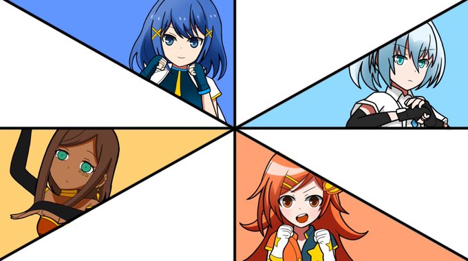 まだタイトルや設定等は途中段階ですが、とりあえずメイン8人のファイターが互いの技を競いリングの上で闘うみたいな王道タイプの世界観で色々描いていこうと思います! とりあえずキャラデザだけ出来上がってる4人です、これが8人に増えていきます。多分全員酷い目にあいます。 #プロレス