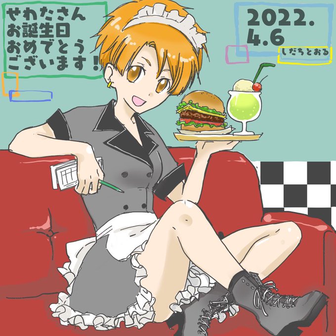 @ebizori_23 せわたさんお誕生日おめでとうございます🎁🎂🎉🍾沢山遊んでくださりありがとうございます🥳個人的にダイナー店員にょみつにハマってるので強制的にプレゼントです!!🎁今後ともよろしくお願い致します!!!