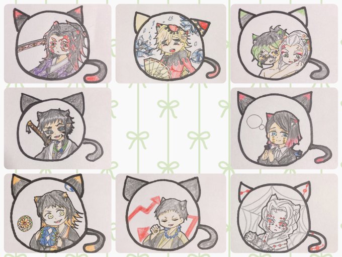 「もう二度と台紙でイラストを描かない」と誓った筈なのに別ジャンルで同じ過ちを繰り返す女の図です😇 でも、色んな人から見やすいって言って貰えるから良しとしよう あと、これが🐈ストラップのキャラ一覧です