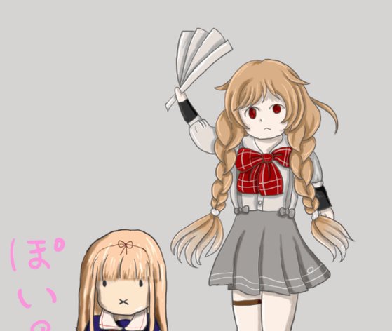 イタリアの策略により制服をエロアイドル風に改造されたガリバルディ・・・のはずだったが、眼精疲労により続行断念。orz