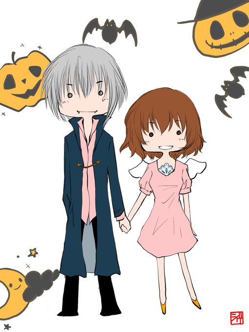 ドラキュラさんと天使ちゃん。 友達のハロウィンパーティーに誘われて、夫婦()で参加。 統矢が悪魔ちゃんコスは露出高いからヤダなっつって天使ちゃんコスになったチナツちゃん。 ……という妄想(*'ω'*)