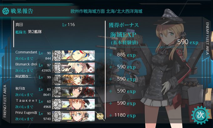プリンツのカットインが決まってE5-2クリア!(乙から丙に変更)