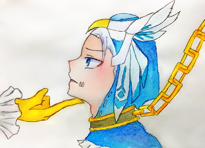 思いっきり別ジャンルの過去絵も入ってるけど、水彩使ってて肌を塗ると力尽きて残りが雑になってるの笑う 髪とか服の綺麗な塗り方知りたい……