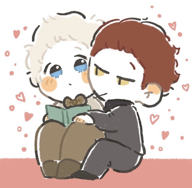 年末本の整理をする😇を手伝う😈 2枚目は年末掃除で汚れた😈の服をを😇のフゥ〜で綺麗にしてくれる話です✨ (リクエストありがとうございました💓)