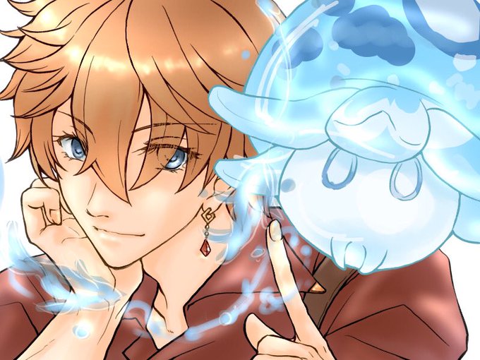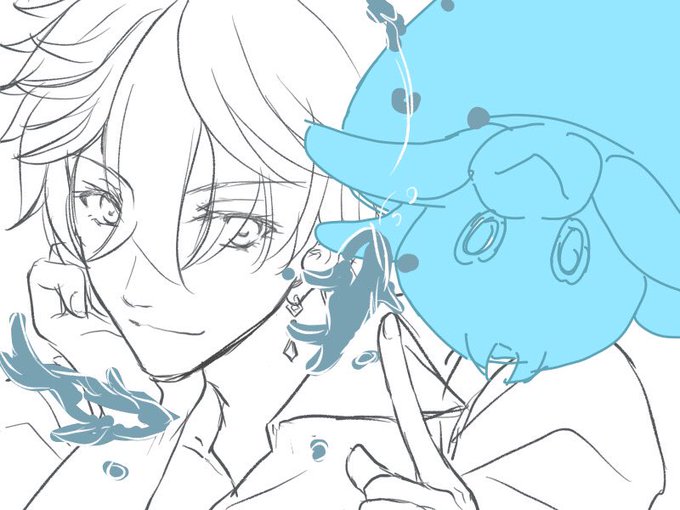 タルタリヤと水キノコン。 色塗りよくわからない…