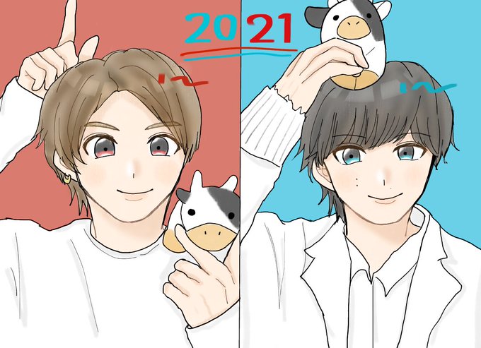 あけましておめでとうございます! 今年もよろしくお願いします〜! 年男のじぐひら描きました💙❤🐮