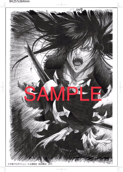 ○「どろろと百鬼丸伝」直筆サイン入り複製原画(額装有り)• 各8000円。