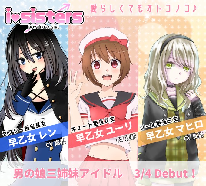 男の娘三姉妹グループ「i♡sisters」デビュー! 島えな、真碧さん、彩本心花さんによる、三姉妹の日記念のコラボアイドル企画です #iLOVEsisters #三姉妹の日