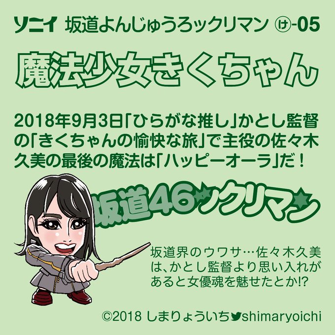 やっとできました。 きくちゃんの愉快な旅シリーズで 主役の #佐々木久美 ちゃんです。 これで3種コンプかなぁ…。 ※残りの2つも入れておきます。 かとし監督も入れるかなぁ(笑) #ひらがな推し #けやき坂46