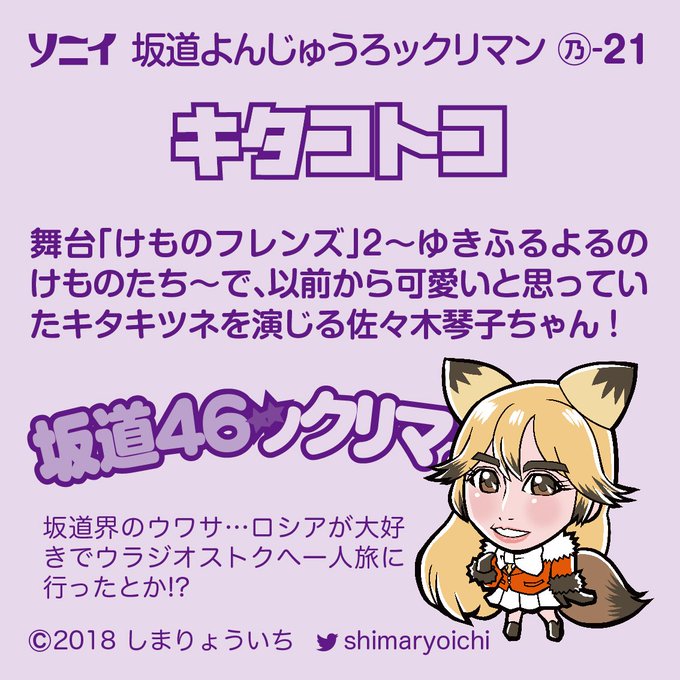 キタコトコできました^^ #キタキツネ #けものフレンズ #乃木坂46 #佐々木琴子 #ビックリマン