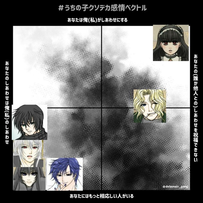 #うちの子クソデカ感情ベクトル テンプレお借りしました よろず屋店主がかなり微妙なところ 真ん中でもいいかもしれない 嫉妬深いけど