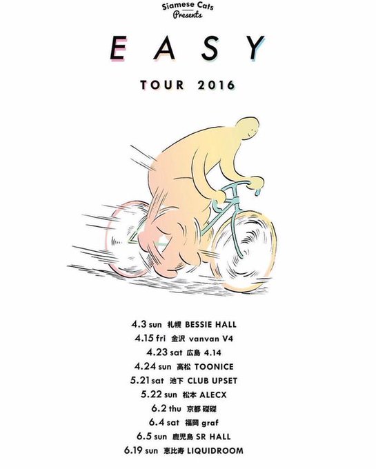 【発売中】シャムキャッツ「EASY TOUR」6/2(木)京都磔磔 w/D.A.N. ZINE:黒木雅巳/タテイシナオフミ/まちこ!/TOKO(The 光)/mississippi/Violet And Claire/赤鹿麻耶