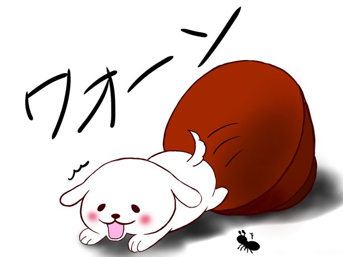 さっきのやつの着彩完了 おわんから転げ落ちてしまったワンさんと、既にたかる準備をしてたけど急に落ちてきてビビるアリさん