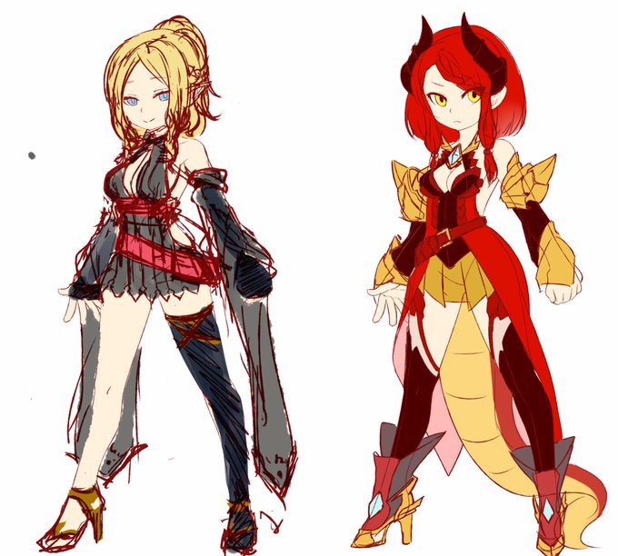 オリジナルゲームのキャラ草案・・・ファンタジーで お姉さん系エルフとプライド高い系ドラゴン娘 もう少し練りたい なんか出して欲しいキャラとかあったら意見ください ツンデレやら獣耳やら。