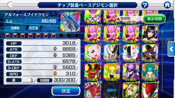 なかなかうまく使いこなせなかったけど、なんとかV2に。ステ画面違うのはスクショ取りそびれて…