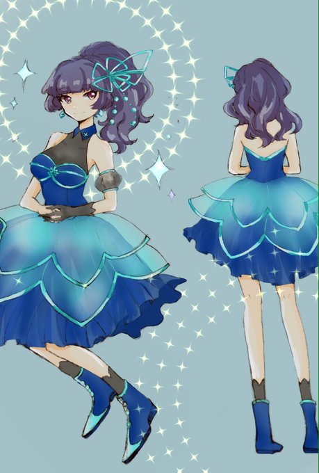 アイスステージ🍵様改めて見たら可愛すぎて描いてしまった 衣装と装飾めっっちゃ可愛い〜〜 後姿の方腕につけるやつ描き忘れた #ナナピク