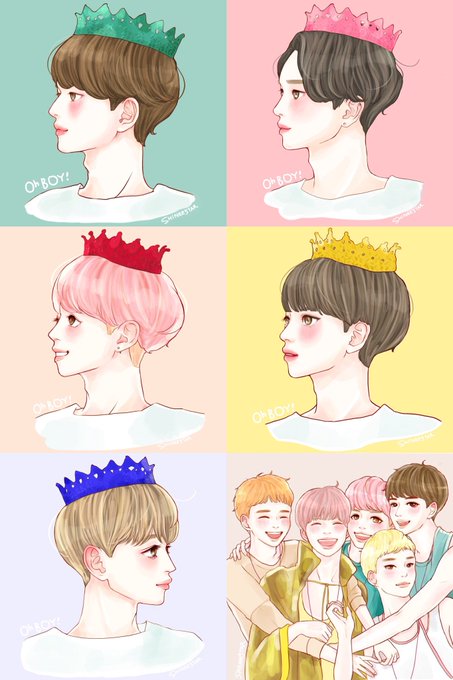 oh boy!princeおにゅちゃん🤴👑💖 5人揃うまでに時間かかったけど一応完成😭✨達成感…!他のメンバーの絵はこのリプの上にくっついてます☺️ #샤이니 #shinee #onew #온유