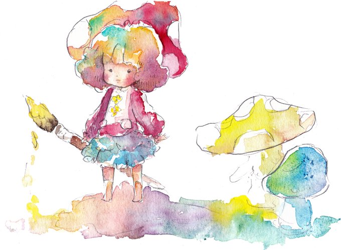 水彩でイラストを描いています。