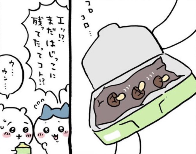 @ngnchiikawa きのこの山🍄✨隅っこの2つ出した!やっぱり結果を知ってるのはちいかわちゃんだけみたいやね(;´Д`)💦前回のお話といいちいかわちゃんがみてる夢の中のお話か🤔それとも…( ´•д•` )💦