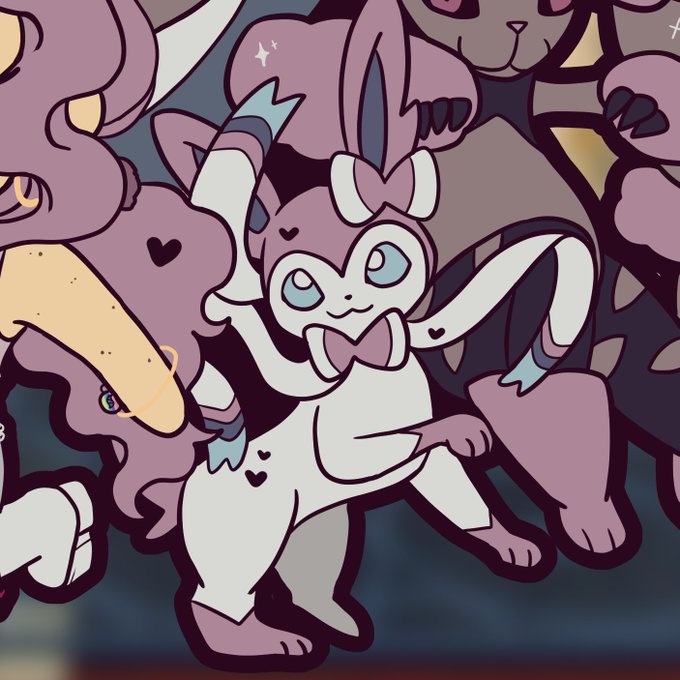 hello please enjoy some of the sylveon I’ve drawn for chibi trainer comms over the last few months 🎀✨