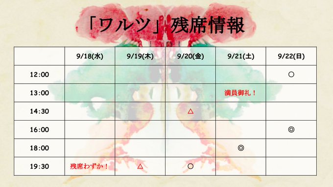 9/21(土)13:00の回がありがたく満員御礼なのに続き、初日も【残りわずか】となりました😭