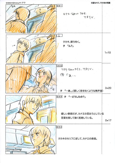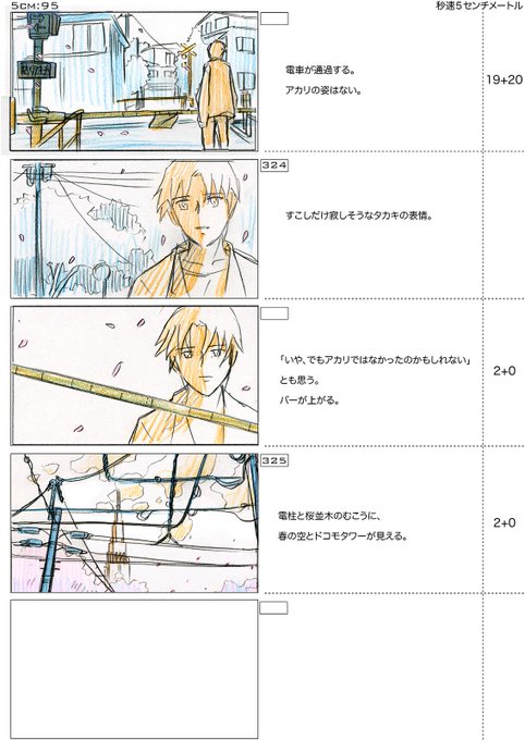 秒速5センチメートル・公開7周年・第三話:絵コンテです。アカリが村上春樹読んでることになってますね笑。「螢・納屋を焼く・その他の短編」ベタだなー、すっかり忘れてました。
