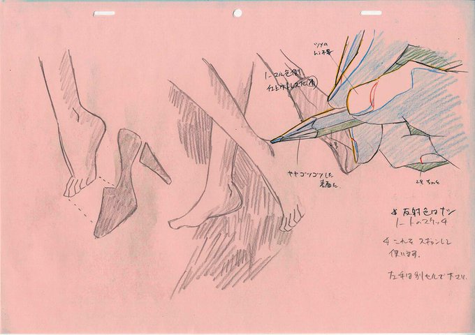 「言の葉の庭」公開一周年記念:こちらはレイアウトです。本作はセルの輪郭線も接する面によって色をコントロールしたので、塗り指示がやや複雑になる場合も(このカットは普通ですが)。 #言の葉の庭